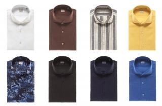 The new Casual & Sport collection offers us linen shirts with french or mandarin collar to be worn unbuttoned, ideal for an aperitif outdoors and featuring a colour palette that includes yellow, light blue, brown, royal blue, white and black. Classy shirts in Liberty of London patterns with floral motifs in mixed shades from sage green to pink are again leading players for the summer season, while paisley and patterns inspired by Japanese graphics are created in garments with brand-new délavé effects on tones of beige, red and turquoise.