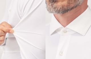 Another perfectly cool, lightweight and breathable fabric is the one used on our Active-shirts. Made with an innovative structure consisting of a polyamide and elastane yarn, this fabric gives you excellent comfort and perfect freedom to move, following the body naturally without feeling too snug, even on the hottest days.