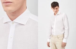 Also in cotton, we have our leno weave, also known as “waffle weave”, which is one of the most breathable shirt fabrics. The fabric that’s all about summer, with a texture that feels light and cool on the skin. The weave, which is like a honeycomb, has a characteristic visual effect, as well as a particular brightness and breathability. Leno weave shirts are perfect when it comes to creating a casual look, such as when paired chinos and sneakers, but also ideal in a more formal context, such as under a deconstructed jacket.