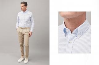 Men who work in the tertiary sector but are not in direct contact with clients can opt for a button-down shirt or maybe even a long-sleeved polo-shirt offering a certain elegance. It’s a different matter for start-up companies and younger business environments which, along with business-casual shirts, also allow for the use of more informal garments such as sweaters.