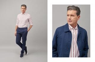 The striped shirt is an example, an extremely versatile garment to be worn at work and on more informal occasions, which, season after season, renews itself with different colour combinations, materials and details. For the spring/summer season the choice of fabric is light, fresh chambray, which was once strictly for work wear. A delicate slub is added to this unique weave, giving depth and texture to the characteristic stripes. A man’s shirt that is suitable for everyday use but at the same time is an effortlessly chic style icon often used by actors such as Paul Newman and Steve McQueen in the past.