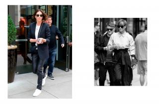 However, outfits that mix masculine and feminine garments remain her strength, also on formal occasions such as the Women’s Gala in Hollywood where she wears a flowery dress paired with a black structured jacket, red sandals that match the pattern of the dress and a leather clutch to match the jacket.