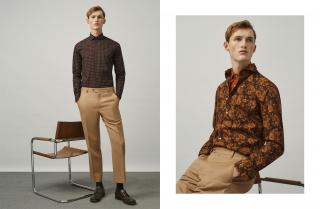 If you want to play with autumn colours you can team a light-coloured pair of trousers with a poplin print shirt in earth tones, with a semi-spread collar.