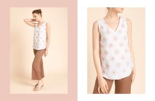 Thanks to this detailed elegant working, the sleeveless Ginny is the ideal blouse for the woman who wants a casual-chic style, thus appropriate for a variety of occasions: from the office or shopping with friends during the day, to the evening for an aperitif or a dinner. What can it be worn with? Ginny is an excellent basic piece that can be worn with a pair of linen trousers in a light or pastel shade. Perfect with a pair of leather slip-ons for a casual look, or sandals with a bit of a heel for a more refined effect.