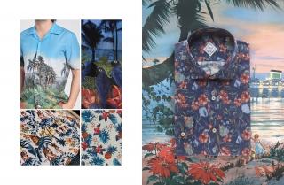 Heritage is a hybrid capsule vintage collection, a mix of styles redesigned in a contemporary way for a wide public, from the young boy to the mature man. The key elements of these summer shirts for men are short sleeves, wide straight body, semi-spread collar, button-down collar and the two typical flat collars of the bowling and Hawaiian shirts, and the welt pocket for the Cuban model. With the range of fifteen shirts, seven plain and eight with tropical prints Xacus has perfectly recreated the atmosphere of the period with craftsmanship and attention to detail: new blends and special dyes, including the washed-out basket weave, and fine fabrics. The fabrics used for these men’s shirts: basket weave, the elegant Oxford weave, linen, poplin or micro Tencel are light fresh and refined, as well as soft and comfortable.