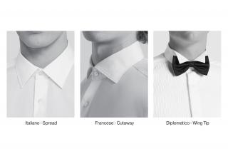 Following the rules that define the aesthetic canons of a well-constructed white shirt, this garment can feature an Italian collar (a great classic, perfect for more formal occasions and often combined with narrower tie-knots), a French collar (definitely more contemporary, selected for slightly more informal situations and created to be worn with a more structured tie-knot such as the Windsor knot), or a wing-collar for special occasions and cuffs with cufflinks, nowadays loved by many not just for extremely formal events, but also to complete less serious looks requiring a touch of style.