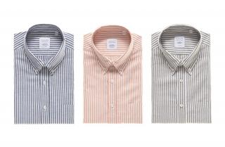 This season, the offer is broadened by striped button-down shirts, in the powder blue, amber and military green variants.