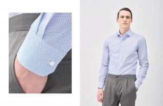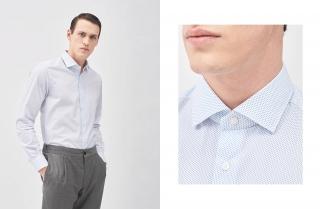 Finally, for fans of traditional classic styles who would never deviate from the elegant business outfit, we propose two combinations with micro-print shirts in light or dark colours. For those who like pale-coloured shirts, we might choose a pattern of pale blue dots or a geometric pattern of light blue diamond shapes, worn together with light grey, classic trousers and coordinating jacket to give a more formal look, or a dark blue cotton round-necked sweater and sneakers, for a more sporty, casual appearance. If, however, you prefer darker colours, this button-down shirt with its elegant circular geometric pattern, can be matched perfectly with dark blue chino pants and a sports blazer in a coordinated shade, to create a look with a timeless charm that’s perfect for any occasion.