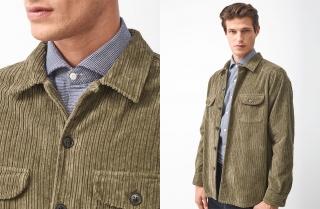 For a sportier style, we have chosen this corduroy shirt in army green with a wider weave, and yarn dyed for a soft vintage-chic effect that looks fantastic over a white tee, a pair of chinos and a some blue All Stars. An outfit that says metropolitan as well as collegewear. The same model in blue works well over a blue and white striped shirt, with a pair of army green wool trousers and some dark brown boat shoes, for a neo-dandy look.