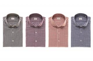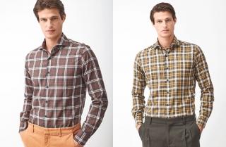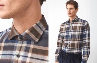 For the more elegant, on the other hand, we can think about looks with a checked shirt to be worn tucked in to trousers: a perfect compromise for breaking up an outfit that is a bit too serious. Ideal for informal daywear, the checked flannel shirts with French collar are made by the Albini Group on a Twill base, guaranteeing a soft, pleasant feel to the skin. For example, this plaid shirt in blue and burnt brown can be worn with classic cool woollen trousers or a blue cotton pair of chino pants and a pair of white sneakers, for a casual-chic look, or this shirt with its orange and grey hues that is perfect when matched with grey or dark green trousers, a matching blazer and a pair of black Derby lace-ups.