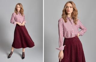 In this year’s new AUTUMN WINTER collections, women’s blouses are in neutral, cold colours. Light and dark shades of grey, and sumptuous Bordeaux dominate the scene; two colours that provide a touch of stately elegance. For a refined autumn outfit wear an oversized striped or pinstriped grey tunic with three-quarter sleeves and black leather ankle boots, or a blouse with vertical stripes and a long, soft bell-shaped skirt, for a complete wine-coloured look.