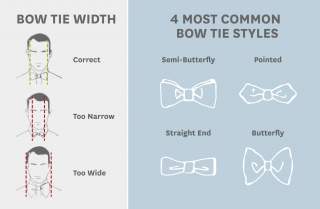 The size of the bow is important because, generally speaking, the bow tie should be aligned with the sides of the face of the person wearing it: if the ends are in line with the ears, then it is too wide; if, on the other hand, they are in line with the eyes, then the bow is too narrow.