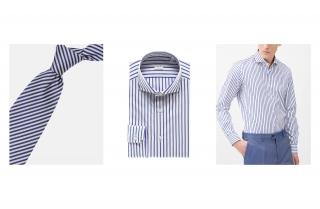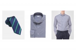 One of the things to take into consideration when creating the ideal match, is the size of the pattern on your tie and shirt. If both have stripes, then they should be in a different thickness. The same applies to the density of the stripes and therefore, a close-striped shirt should be paired with a tie that has wider-spaced stripes, and vice versa. If your choice falls on different geometric patterns, like a check shirt and a striped tie, or vice versa, it is best for the size and the density of the patterns to be similar. A classic combination using pattern on pattern, for example, is a regimental tie with diagonal strips in green and blue, worn with a blue striped shirt in colours to match the tie.