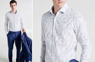 Printed patterned shirts are made more delicate in shades of dark and pale blue, in very high quality materials such as cotton muslins from the Albini weaving factory and Liberty of London fine printed cottons, clearly referenced in the White Label section.