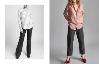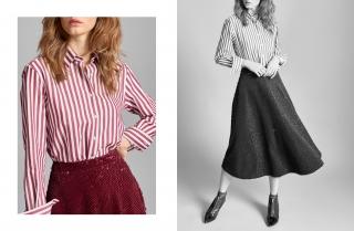 A slim-fit striped shirt combines well with a pair of tight, skinny cigarette or slightly bootcut trousers, but the ideal match is with a pencil skirt.