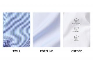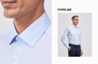 Poplin is a fabric that stands out for a twill weave using twice as many warp threads as weft ones, and for its imperceptible striped effect. A Poplin shirt is an authentic men's fashion classic, thanks to its fine, bright, compact appearance. Ideal for an everyday business look, with or without a tie, a light blue Poplin shirt with a Kent collar looks great with an unmatched suit, blue jacket, classic dark grey trousers and a pair of black brogues. Poplin always offers uniquely comfortable wear, thanks to its excellent softness, strength and breathability.