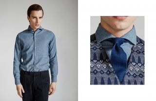 Notwithstanding its origin as an informal garment, the flannel shirt may also be worn for a more elegant, sporty look to be displayed on a romantic date, or even in the office. A flannel shirt in denim or with micro-checks may become that small detail that makes the difference if combined in an ensemble, for example with slimfit chinos and a destructured blazer – an ideal outfit for the weekend. But if we imagine a more formal, elegant version, we can opt for a plain-coloured flannel shirt in a quieter, more sober colour, such as a classic blue or grey, to match with a contrasting suit or a jacket-and-trouser combination, with a woollen tie and a pair of suede shoes to give an interesting contrast of textures.