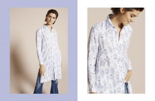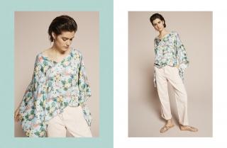 The women's shirt in the new collection adapts itself and is continually reinterpreted in its role: as a protagonist when worn as a dress in various lengths, as part of an outfit with tunics that can be matched with trousers with different prints, or when it is worn as a coat and declines itself in poncho and sailor's jacket. To complete the outfit, Xacus proposes linen and silk trousers, the same fabrics chosen for the women's shirt. Lastly, room is given over to floating gauze strips, linens with wide weaves, maxi jacquard, basketweave effect fabrics, prints on crisp cottons with geometrical patterns and floating viscose with audacious lively coloured prints.