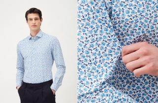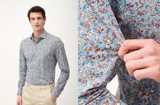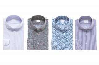 The collection offers stripes in all sizes and variants and new shirts with floral prints, indeed the most representative of a fresh and spring mood. This lively weave, certainly contemporary with its small French collar, follows the theme of blue in its various shades, “contaminated” by powder and brick coloured details following a botanical inspiration that stands out for its quiet refinement.