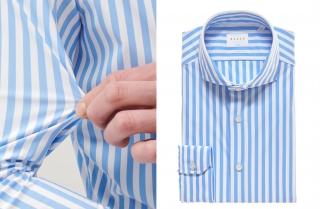 The novelty of the season is the yarn-dyed shirt on active fabric. This exclusive Xacus treatment allows the fabric to maintain its colour even over time without ever fading because of the wearing down of the fibre. Sky blue is the leading colour that brings the season to a great start, featuring thin stripes in the three shades of sky blue, from the lightest to the most intense, up to the iconic royal blue and including also a thick striped and very trendy shirt available in a versatile business and casual version with semi-soft French collar. This model allows customising your style depending on the occasion thanks to the comfort of an active shirt with bright blue that fits perfectly with mismatched jacket & pants, under a traditional blazer, or as a refined yet casual style with a chino and a sweater over the shoulders, ideal for a lunch outdoors over the weekend.