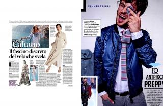 Whereas in the Messaggero, the spotlight is on a womenswear summer wardrobe classic: the tunic. The Xacus model is taken as an example of a long shirt with side slits that can be used both as a kaftan for the beach and as part of an elegant outfit for the evening. Lastly, in the Summer Trends column of the Greek edition of Esquire, the striped button-down shirt is the star of the preppy look for men.
