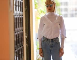 Fashion influencer and Glamour Italy contributor Linda Tol wears Xacus Donna on her way to Armani show during Milan Fashion Week in March 2016.