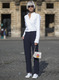 Linda Tol spotted in Paris by Highsnobiety during Paris Fashion Week wearing a Xacus Woman shirt from the new FW 2015 collection.