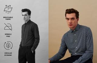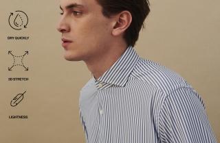 La visione rinnovata del classico maschile investe il mondo della camicia che si evolve nella sua composizione, attraverso un tessuto più comodo, traspirante e più elastico dei filati classici.